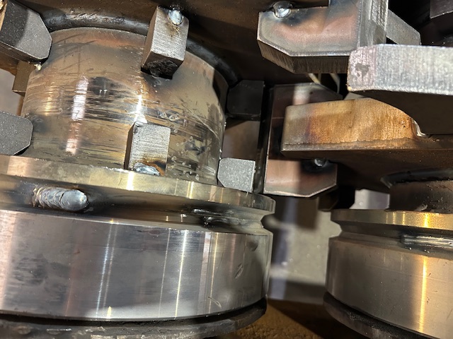 - Wij lassen onze rotoren af in een speciale bok, zodat we het synchroon draaien kunnen nabootsen voor een nog uniformere verkleining van uw product.